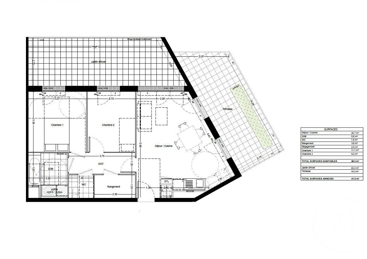 Appartement F3 à vendre 3 pièces - 59,30 m2 NOISY LE SEC - 93